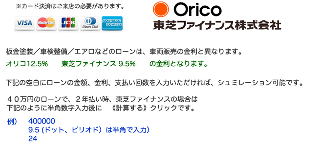 現金/カード/ローン/お振込が可能です。