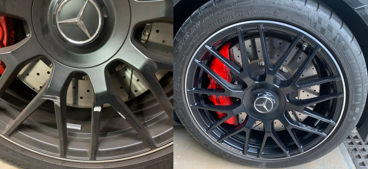 純正ホイールのガリ傷を修正、ペイント可能です。