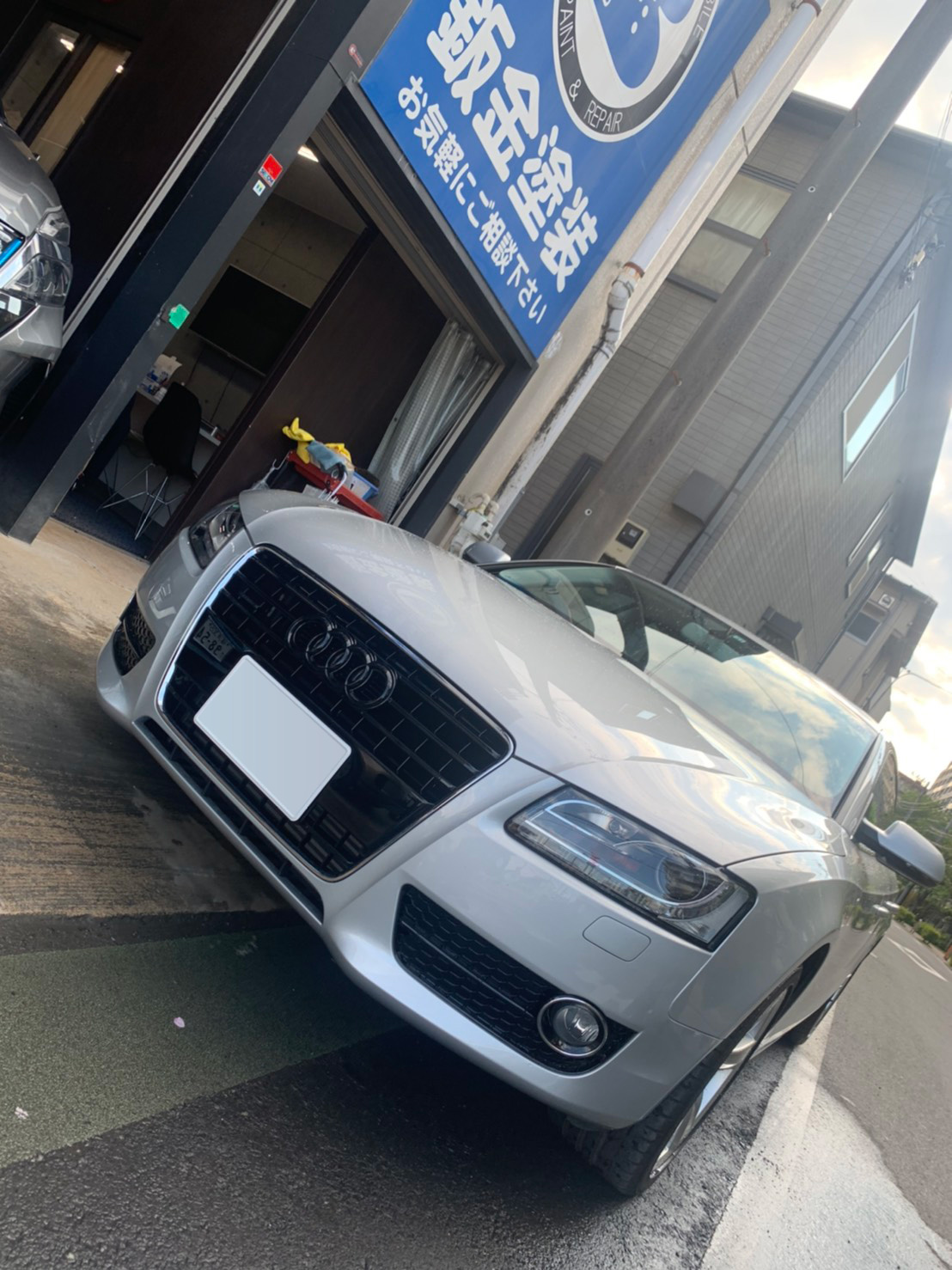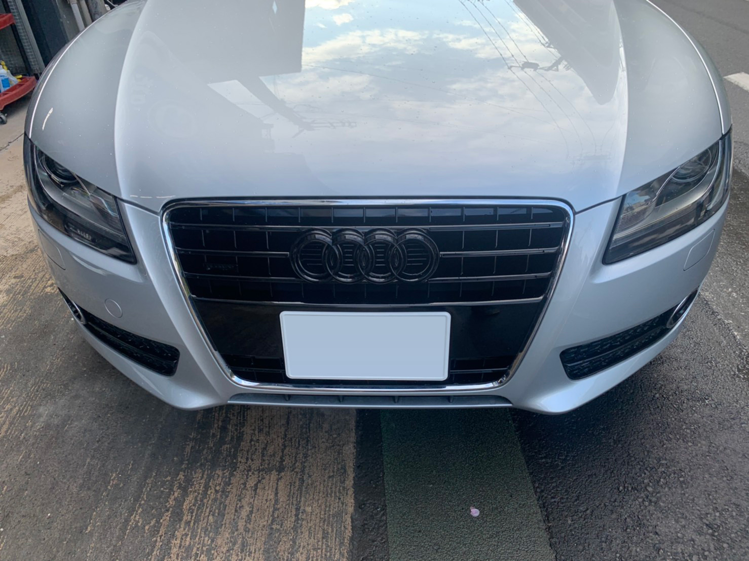 アウディのメッキ部のマットブラック化です。