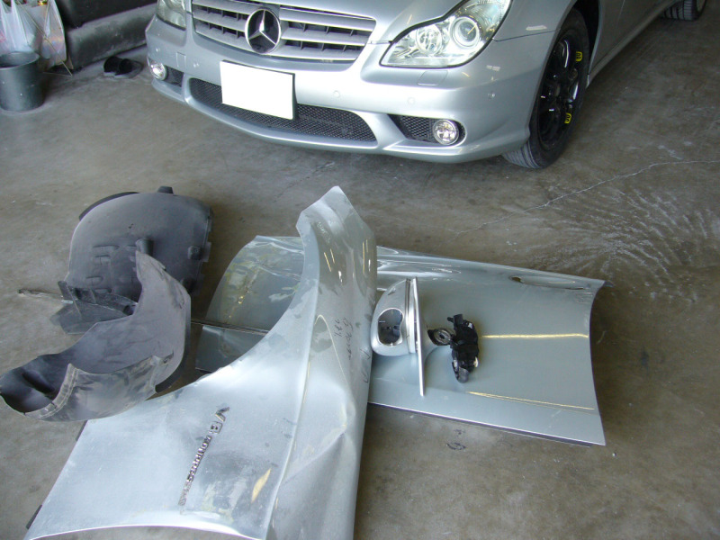 フェンダーフロントバンパー中古パーツ利用作業実例と料金(作業前・後)板金塗装