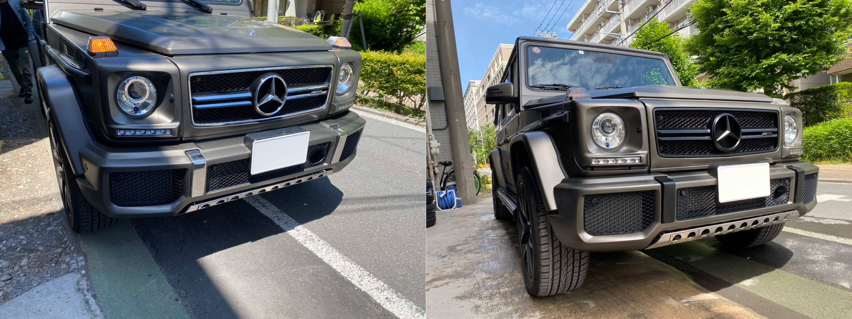 フロントグリル・バンパーメッキモール・全エンブレムのツヤ消しブラック化