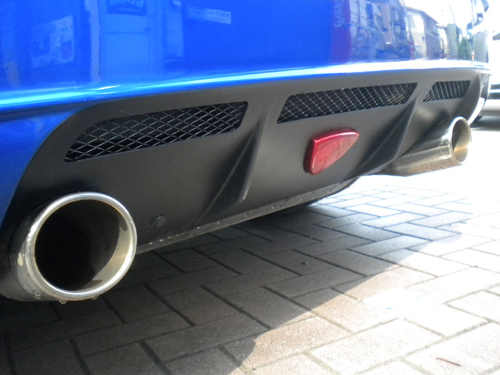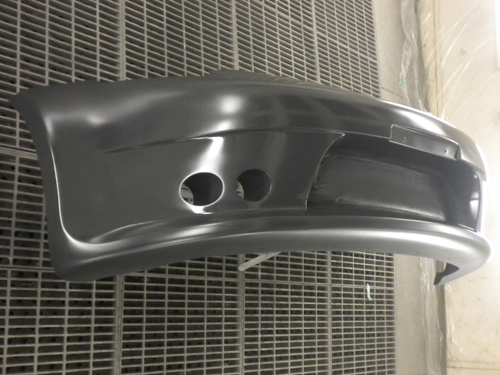 フロントバンパーのエンブレム箇所を穴埋め、フォグを片側2連、左右で4連にFRPで整形し作成しました。 リアはバックフォグ加工